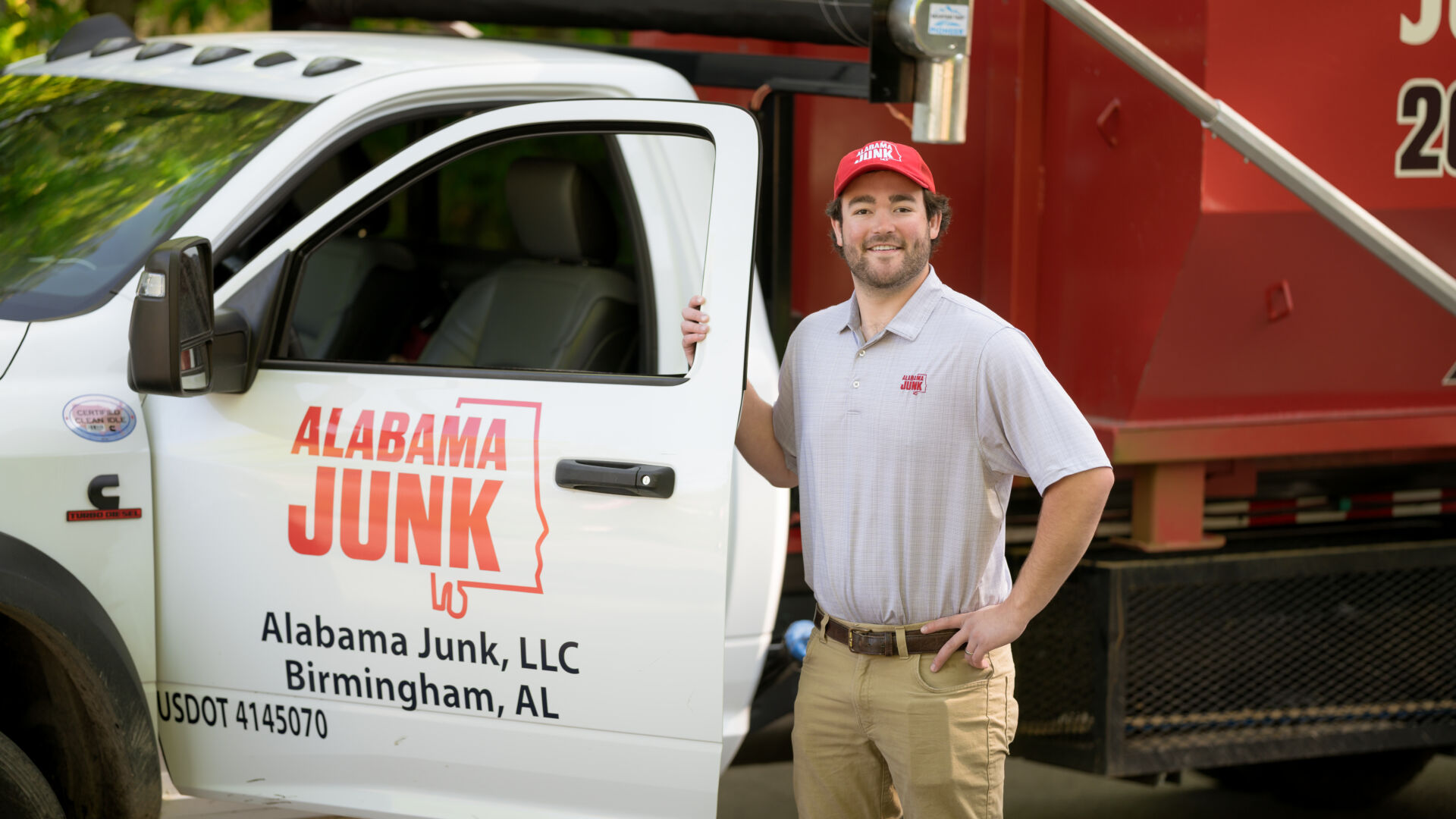 ” Hello, I’m Chase Neblett, founder, and CEO of Alabama Junk, proudly serving Birmingham and Tuscaloosa as the first locally-owned junk removal and demolition company. You can schedule an appointment, and our team will assess your junk removal needs with a free, no-obligation quote, and if you’re happy with it, we’ll begin the job immediately.